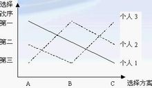 假定有三个人l、2、3,每人共同面临A、B、C三种选择,A代表政府高水平的预算,B代表中等水平的预算,C代表低水平的预算。每个人的偏好顺序以他对于这三个选择方案的排列顺序表示出来。表4-1代表这三个人的偏好顺序: