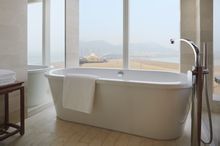 中西合璧的现代设计感辅以精雕细琢的室内装修,时尚大方的木质家具、镂空的屏风隔断以及墙壁上悬挂的水墨艺术品,处处体现着高贵典雅的东方风韵。先进完善的设施包括40寸液晶电视、卫星电视频道、高速有线及无线宽带上网,让客人尊享舒适惬意。客房浴室采用大理石地面设计,并配备水疗式浸浴及独立淋浴设施,而高科技的魔术玻璃只需指尖在开关上轻轻一触,便可灵活实现光线通透与私密空间的转换。