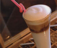我们不得不再一次提到拿铁咖啡。(是它太诱人,还是它风花雪月太过头?)利用果糖与牛奶混合增加牛奶的比重,使它与比重较轻的咖啡不会混合,成为黑白分明的两层,形成如鸡尾酒般曼妙的视觉效果,再加上冰块,给人一种高雅而浪漫的温馨感觉。
