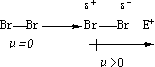 分子在外界电场(试剂、溶剂、极性容器)的影响下,键的极性也发生一些改变,这种现象叫极化性。例如:正常情况下Br—Br键无极性, μ=0,但当外电场E+接近时,由于E+的诱导,引起正负电荷中心分离,出现了键矩 μ