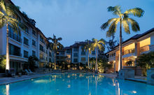 酒店花园 酒店花园位于占地15英亩的景观花园之中,种植超过133,000株植物、花草和树木,并为景观花木、水生植物、鲜艳的热带花朵和果树的展示区。花园池塘中游动着200只日本锦鲤,红色和金色相间的鳞片反射着点点光芒,水流从瀑布飞泻而下,注入池塘。