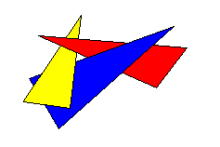 上图中,三个三角面互相遮住对方,所以不管用什么顺序去画,都无法得到正确的结果。另外,这个方法也无法处理三角面有交叉的情形。