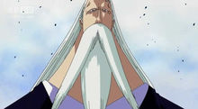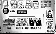 身穿黑色西装,一头白色的长直发,胡子也很长。曾在“奥哈拉事件”中与克洛巴教授对话;并下令斯帕达因杀人灭口。